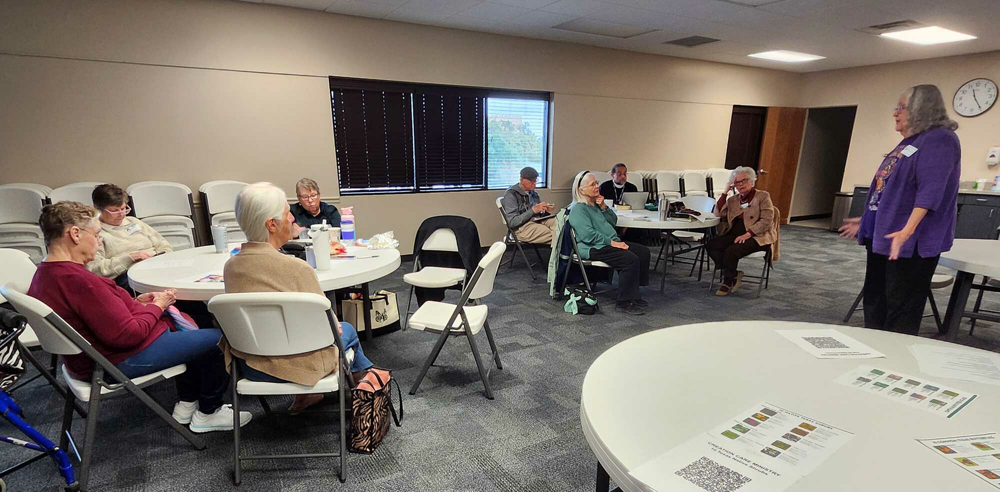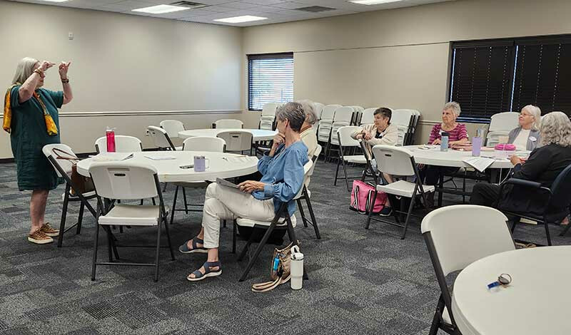 This year's activities included a talk about the importance of nutrition, chair yoga, Bunco (who knew there were so many ways to play!), info about cybersecurity, Plaza de Paz, Hummingbird Hospice, Northeast Service Assistance, meditation, and Visio Divina.