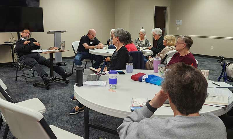 Our monthly Theology à la Carte get-togethers continued through 2024. Our meetings are attended by a steadfast group of regulars…including some folks from outside our parish community! …and other folks who drop in from time to time. As the organizer, I send reminders out in advance of each meeting, and with the help of input from our participants, I do my best to come up with a knotty theological question for the group to grapple with. Often, but not always, we use the previous Sunday’s sermon as a jumping off point for our discussion. Of course, our attendees often bring questions or spiritual puzzlements of their own, adding to the richness of our discussions. Our attendees, being intellectually curious and even mischievous, make sure our conversations are animated and far ranging. We see this in keeping with the meeting’s name, as we view scripture as a rich and diverse smorgasbord, if you will, of topics relevant to how we lead our lives in keeping with Christ’s message. That sounds heavy, I know, but we actually have a whole lot of fun, even during lent!