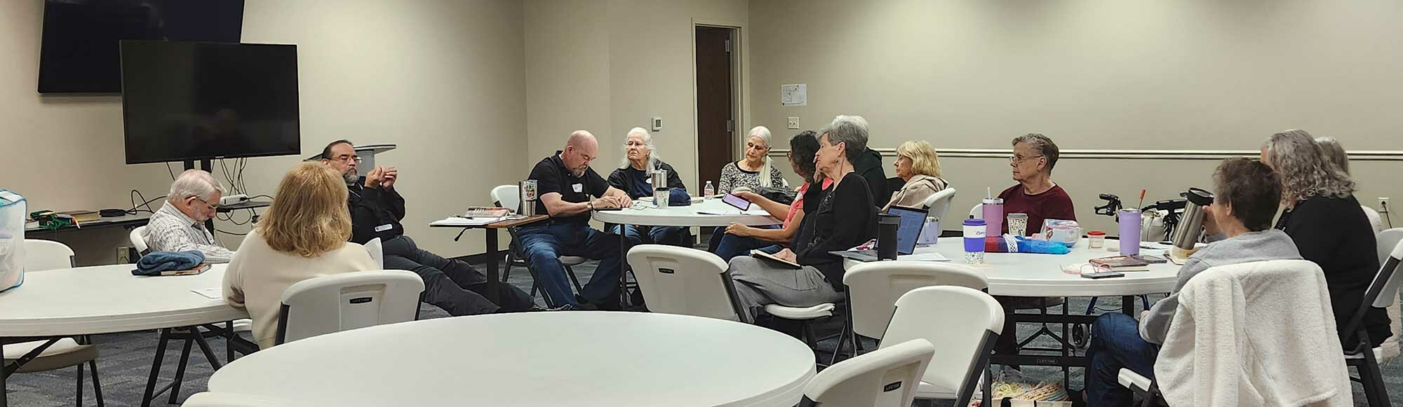 During discussions, participants find that they feel safe to share incidents that have assured them that God is at work in their lives, knowing that “things revealed in C&C stay in C&C.” Faith grows, even if you simply listen to the “conversation.” There’s no “homework”—each class session is self-contained. And there is no rush to “cover” material—we concentrate on “uncovering” ideas. Weekly emails and eSpear announcements ensure no loss of continuity if other church activities cause you to miss a class.