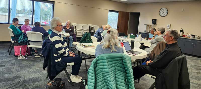 Boomers & Bloomers provides opportunities for our senior members to spend time with friends while learning or doing something interesting on the third week of our Wisdom Years Wednesdays. A light lunch is also included. The average attendance is 12 folks, so there's room for many more.