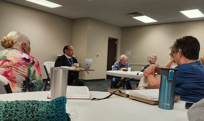Bible and book studies are held at 10:30 every Wednesday morning in the St. John room in the Leadership Center. We’ve studied St. Luke and St. Mark. We also read and discussed “The First Advent in Palestine.”