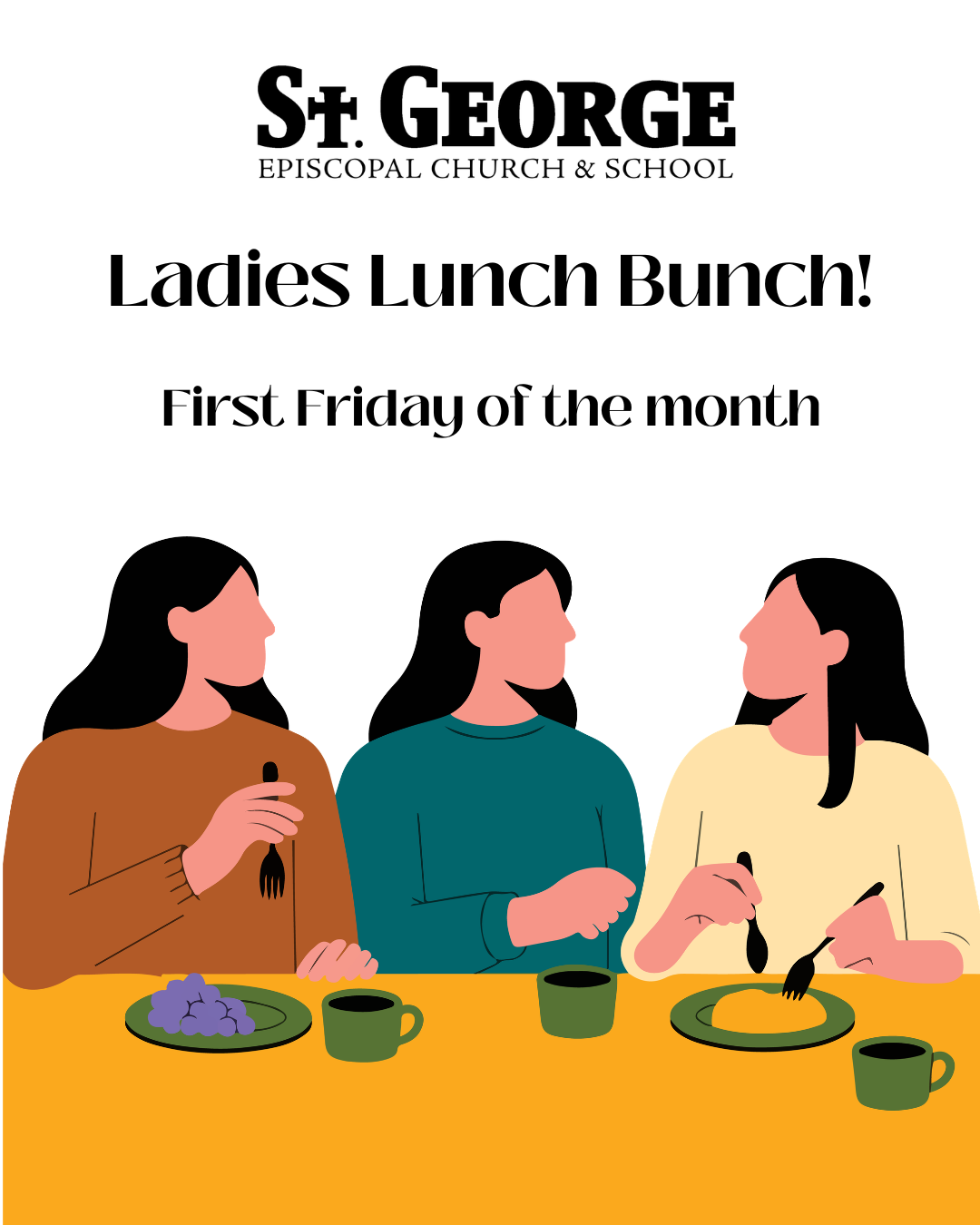 Join the ladies of St. George for food, fun, and fellowship! You are always welcome to bring a friend.