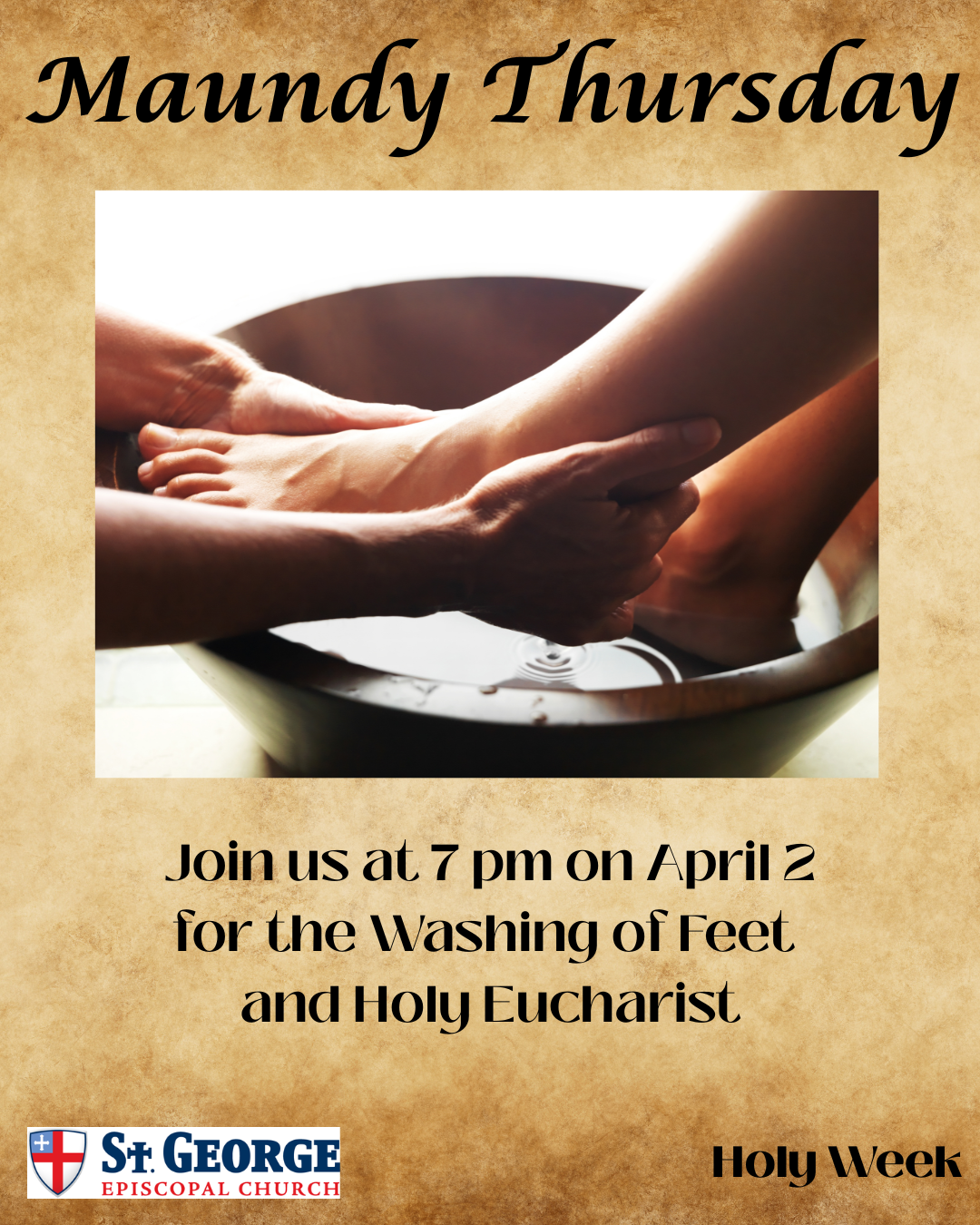 Join us for a special Maundy Thursday service, commemorating the Last Supper and the washing of feet.